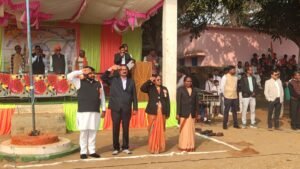 मुख्य अतिथि एवं अन्य जनप्रतिनिधियों की उपस्थिति में राष्ट्रीय ध्वज तिरंगा पूरे सम्मान और गौरव के साथ फहराया गया। ध्वजारोहण के पश्चात राष्ट्रगान का सामूहिक गायन किया गया तथा परेड की सलामी ली गई। राष्ट्रगान की गूंज से पूरा परिसर देशभक्ति, त्याग और राष्ट्रप्रेम की भावना से ओतप्रोत हो उठा।