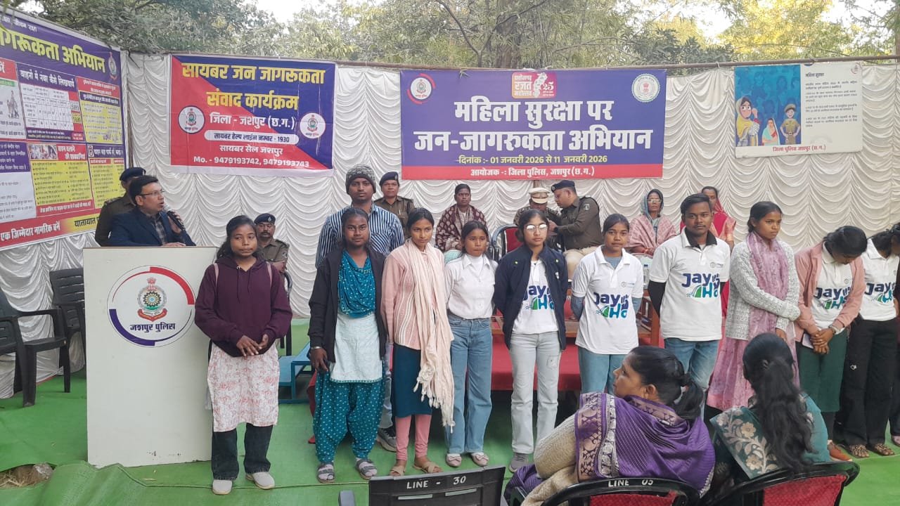जशपुर पुलिस द्वारा रजत जयंती वर्ष 2025–26 के अंतर्गत संचालित महिला सुरक्षा जन-जागरूकता अभियान का समापन 11 जनवरी 2026 को कुनकुरी क्षेत्र के ग्राम मयाली में सफलतापूर्वक किया गया। यह अभियान 01 जनवरी से 11 जनवरी 2026 तक जिले के शहरी, ग्रामीण, दूरस्थ एवं संवेदनशील क्षेत्रों में चरणबद्ध तरीके से संचालित हुआ।